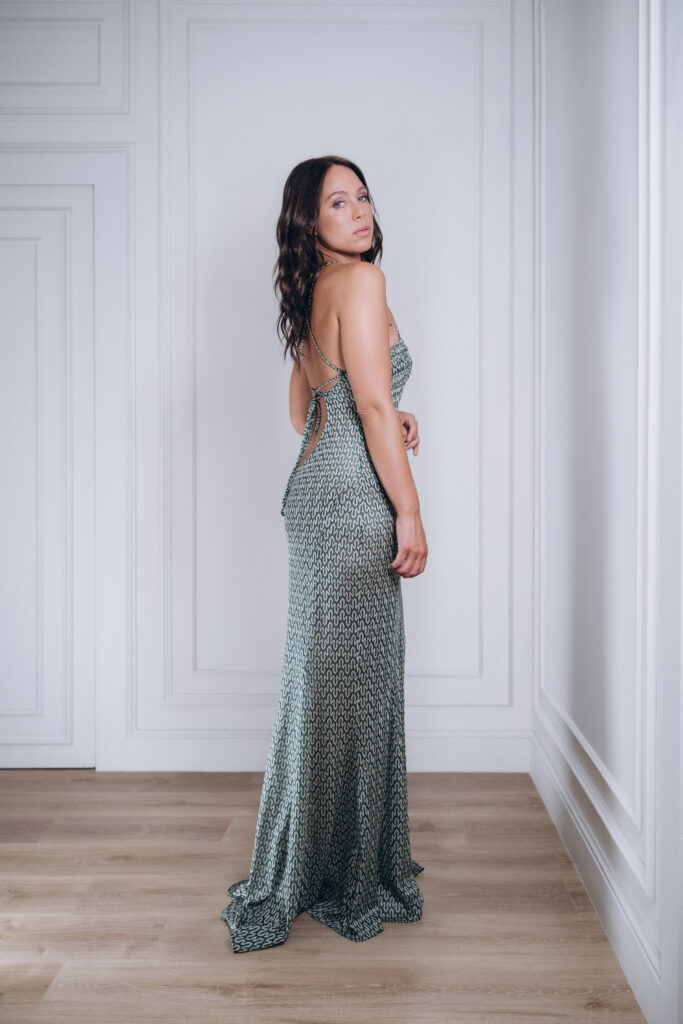 Conforto com elegância para os seus momentos de descanso. Este vestido traz um toque sofisticado ao loungewear, com estampado moderno em tons de verde e modelagem ajustada que valoriza o corpo sem abrir mão da leveza. O recorte frontal com detalhe torcido no busto adiciona feminilidade à peça, tornando-a perfeita para quem gosta de se sentir bonita até nos momentos mais íntimos.
