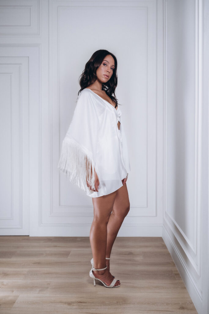 Versátil e elegante, pode ser usado sobre lingerie de luxo, loungewear ou até em produções casuais para um visual moderno e cheio de personalidade.